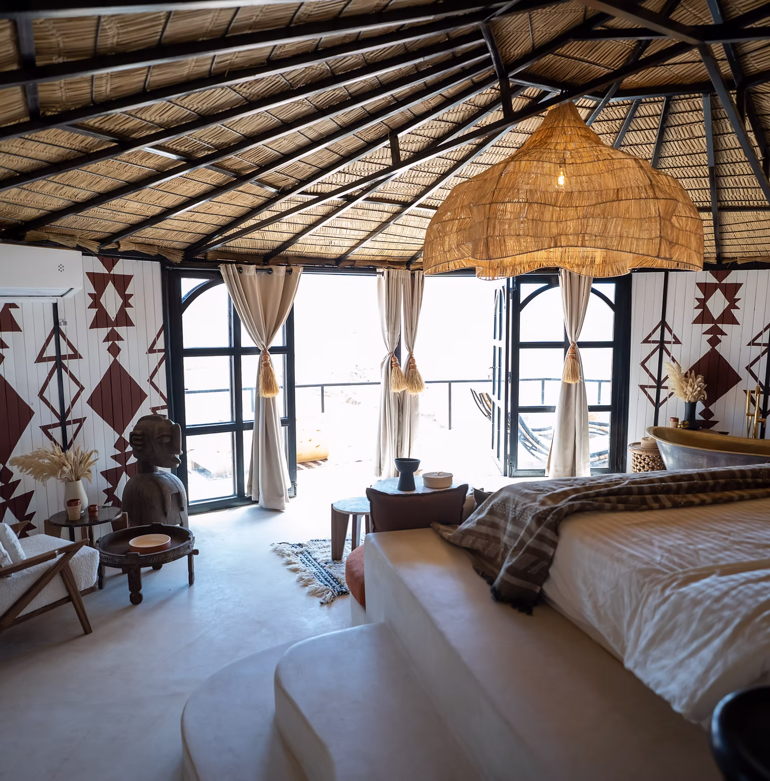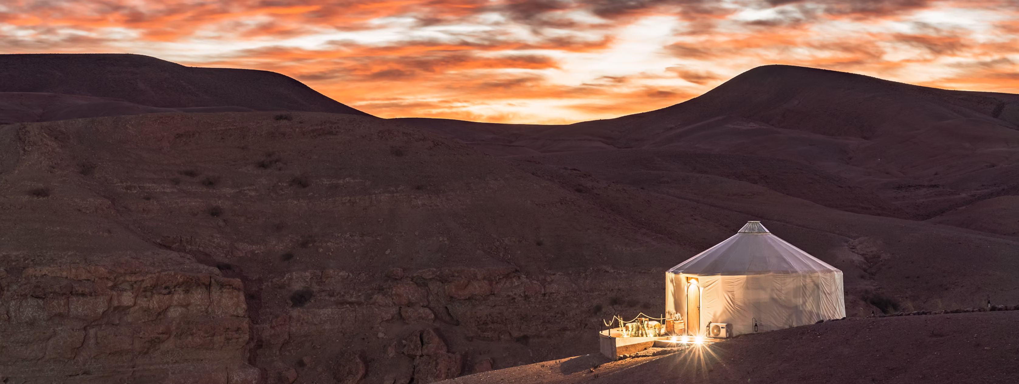 Be Agafay is not your typical desert retreat. While most travelers flock to the Sahara's towering dunes, this hidden sanctuary offers something far more intimate - a chance to experience the raw, unfiltered silence of the Agafay stone desert, just 30 minutes from Marrakech yet worlds away in spirit. Here, the landscape is stark and minimalist, a lunar expanse that strips away distraction and invites deep introspection. The camp itself is a masterpiece of sustainable design, where solar-powered luxury meets Berber authenticity, and where every detail - from the signature hammam to the glass-walled yoga studio - has been thoughtfully curated to enhance your connection with the land.