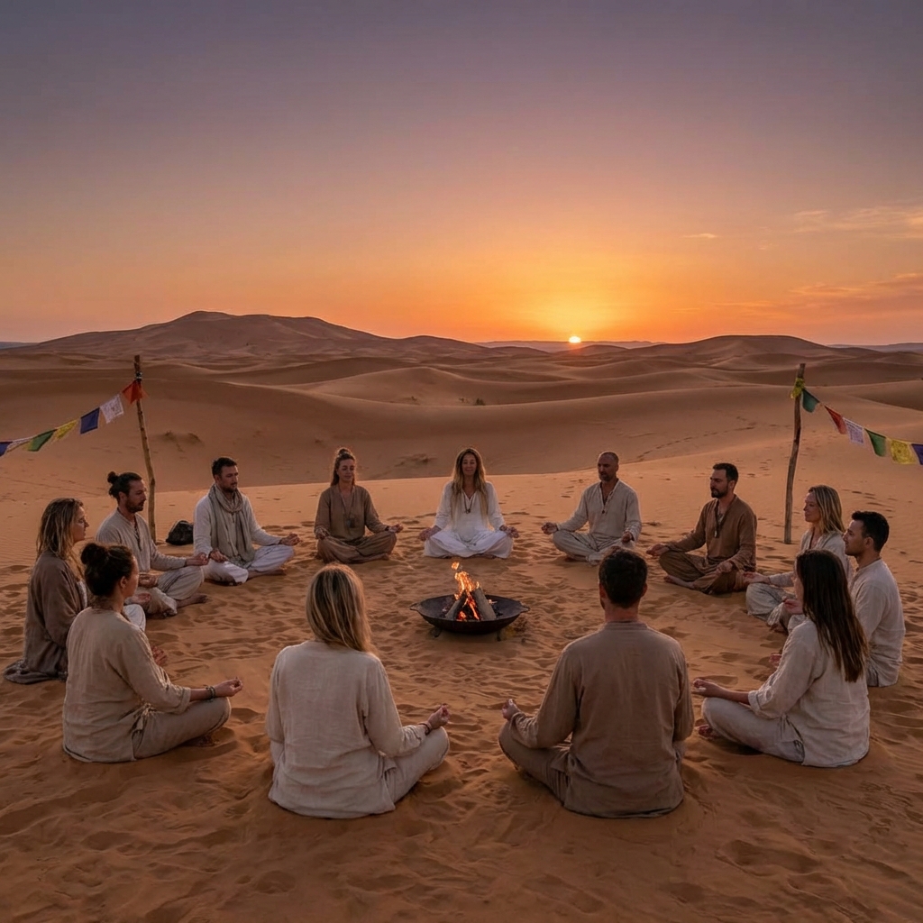 Sunrise meditation. Sandboarding. Evening drum circles and stargazing.